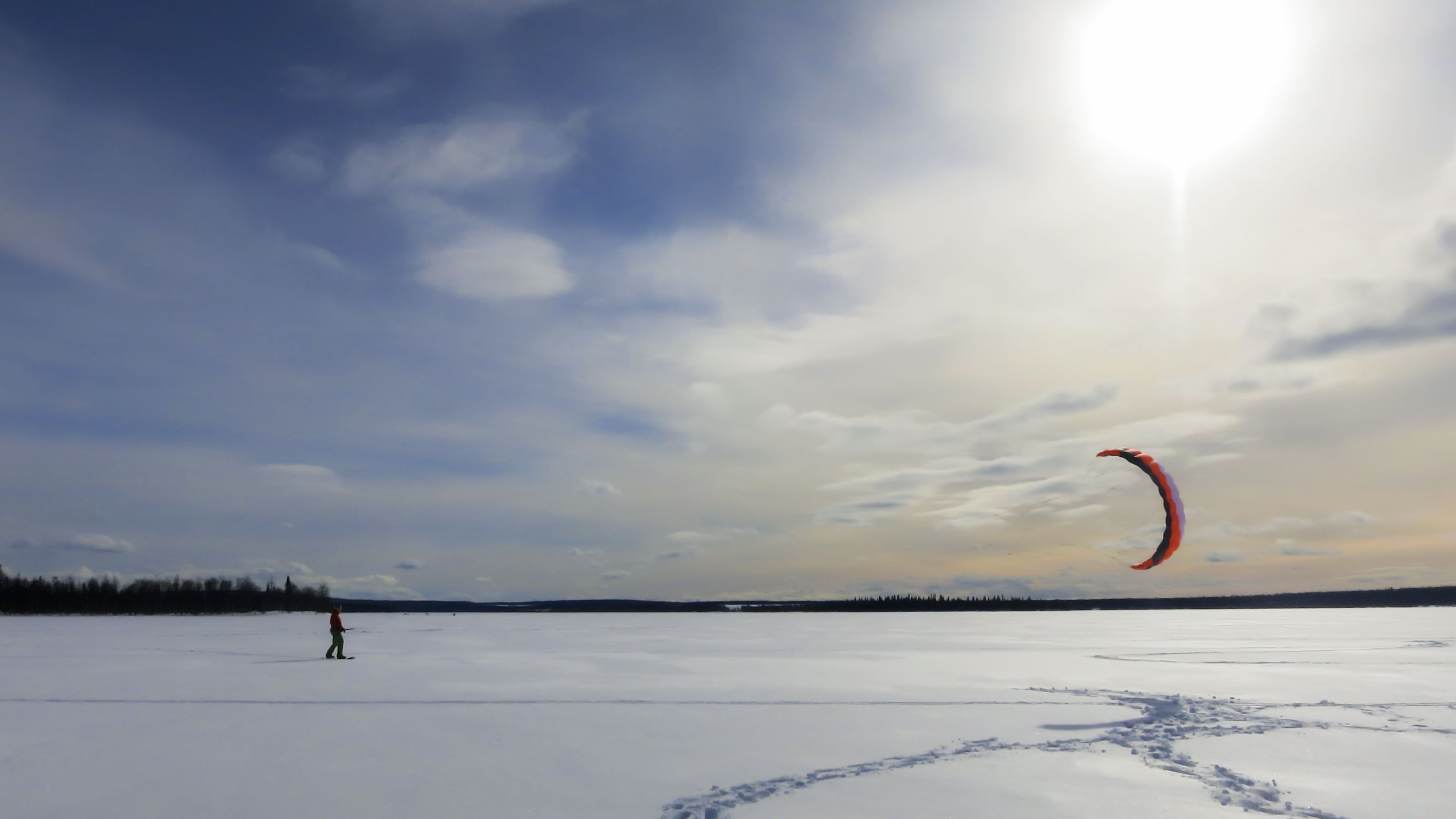 Alkuperäinen matkaseurani sairastui, ja pyörittelin pääsiäisviikon alussa käsissäni lentolippua Ivaloon. Viisi päivää yksin hiihtovaelluksella olisi tylsää. Vaihtoehtoinen matkaseura löytyi, mutta ongelmana oli, että he olivat menossa leijahiihtämään. En ollut koskaan nähnytkään oikeata leijaa. Kova tuuli saa minut huonolle tuulelle. Mutta koska kaikkea on kokeiltava, tilasin netistä halvimman löytämäni leijan ja pakkasin Finnairin mukaan kaikki mahdolliset varusteet splittilaudasta ja skineistä kiipeilyvaljaisiin. Varusteita oli niin paljon, että mukaan mahtui ainoastaan kaksi paitaa, ja toinen niistä päällä.