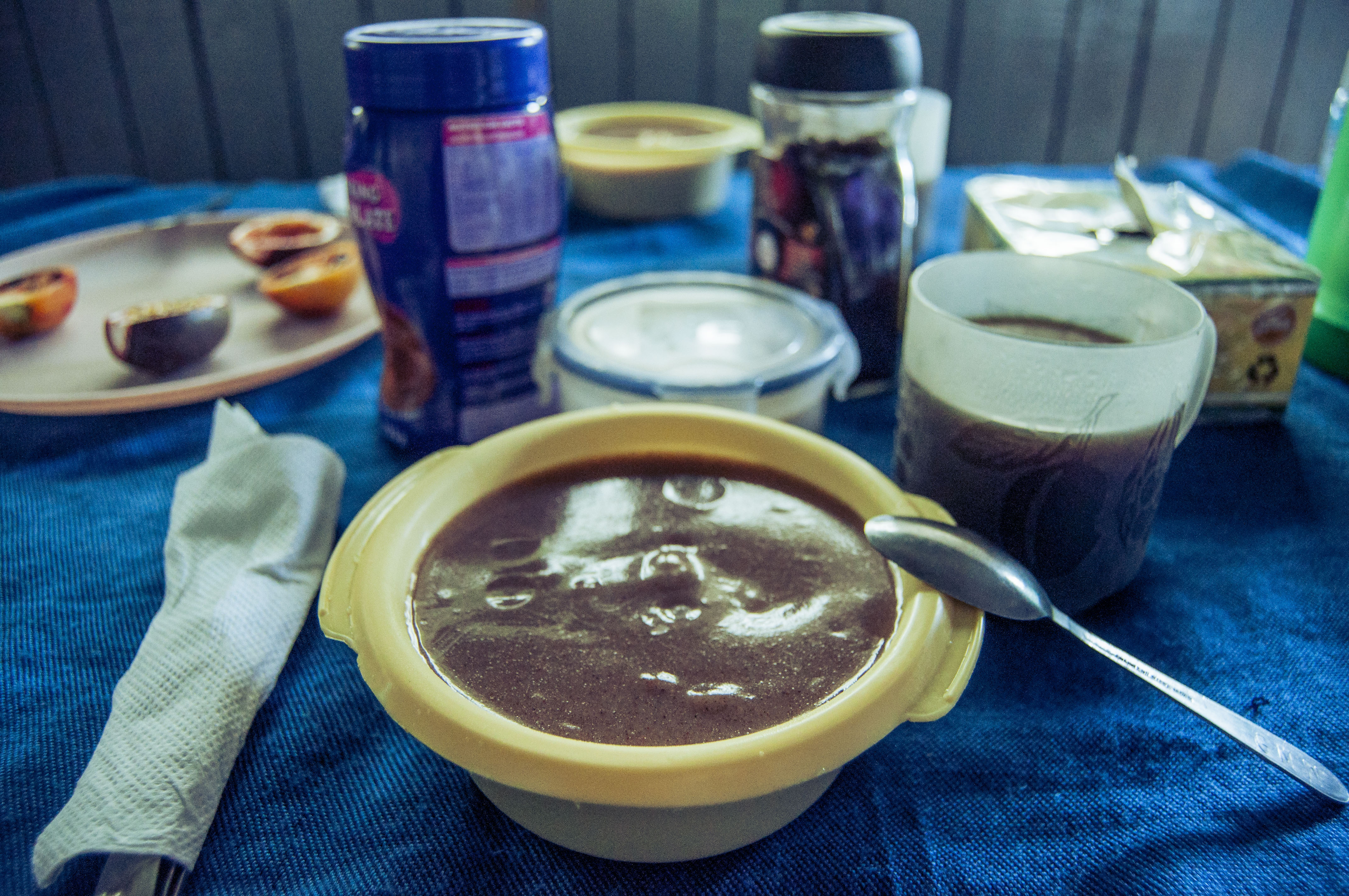Oli vaikea tottua siihen, että leiriydyttyämme saatoimme vain levätä, ihmetellä maisemia ja kuluttaa aikaaamme, kunnes kokki tuli kutsumaan meitä välipalalle. Välipalana oli joka päivä pop cornia ja teetä, joiden turvin jaksoimme odotella illalliseen, joka oli yleensä vihannesmössöä tai papuja. Jälkiruoaksi oli erä erilaisia hedelmiä.
