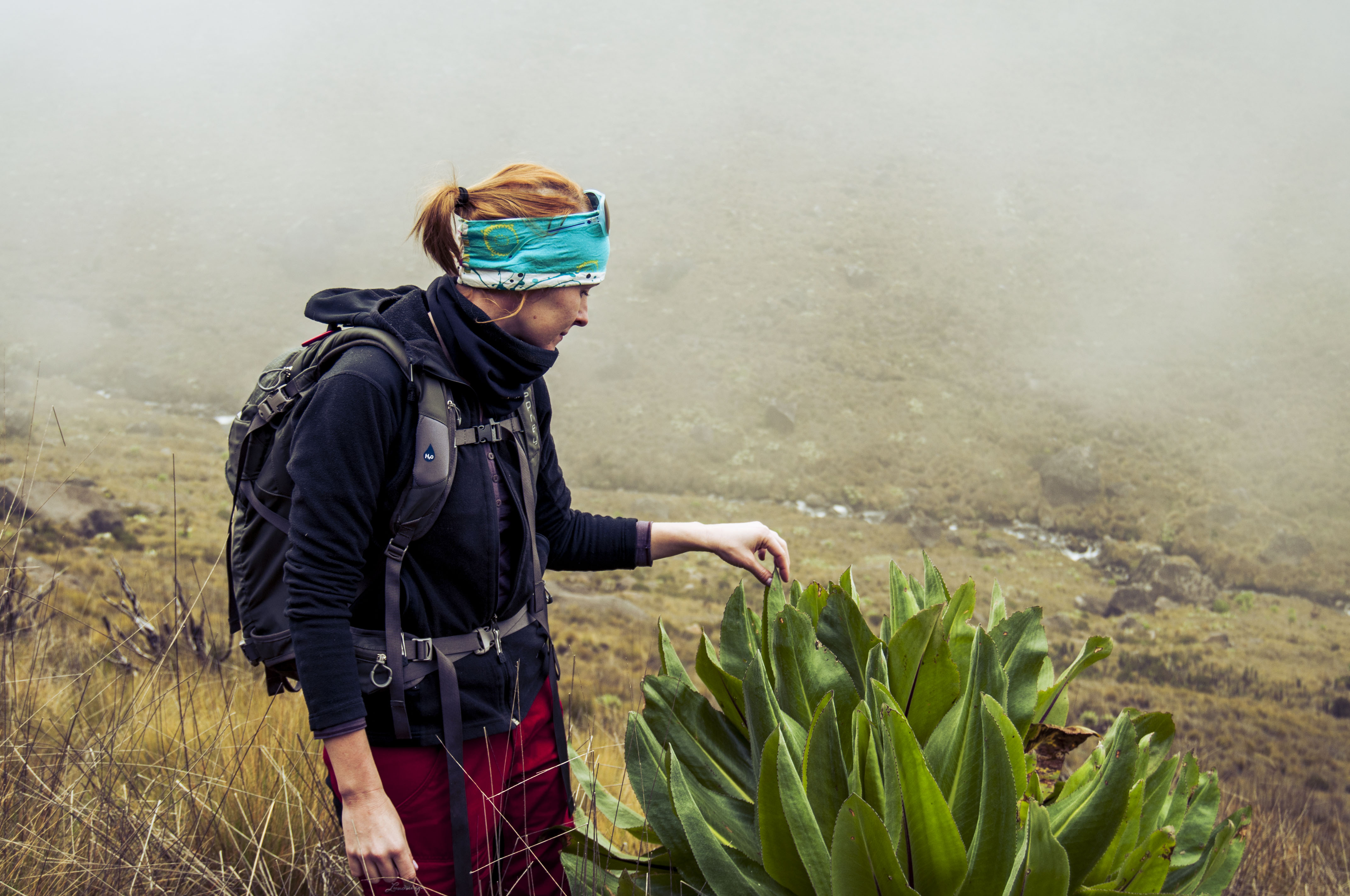 Kun lähestyimme neljän kilometrin korkeutta, luonto alkoi muuttua. Mt. Keniyan ekosysteemi on ainutlaatuinen, sillä se sijaitsee päiväntasaajalla, mutta huomattavan korkealla. Lämpötilat vaihtelevat vuorokauden sisällä -20 asteesta +30 asteeseen. Siellä kasvaa mitä erikoisempia lajeja, mitä erikoisimmissa mittasuhteissa.
