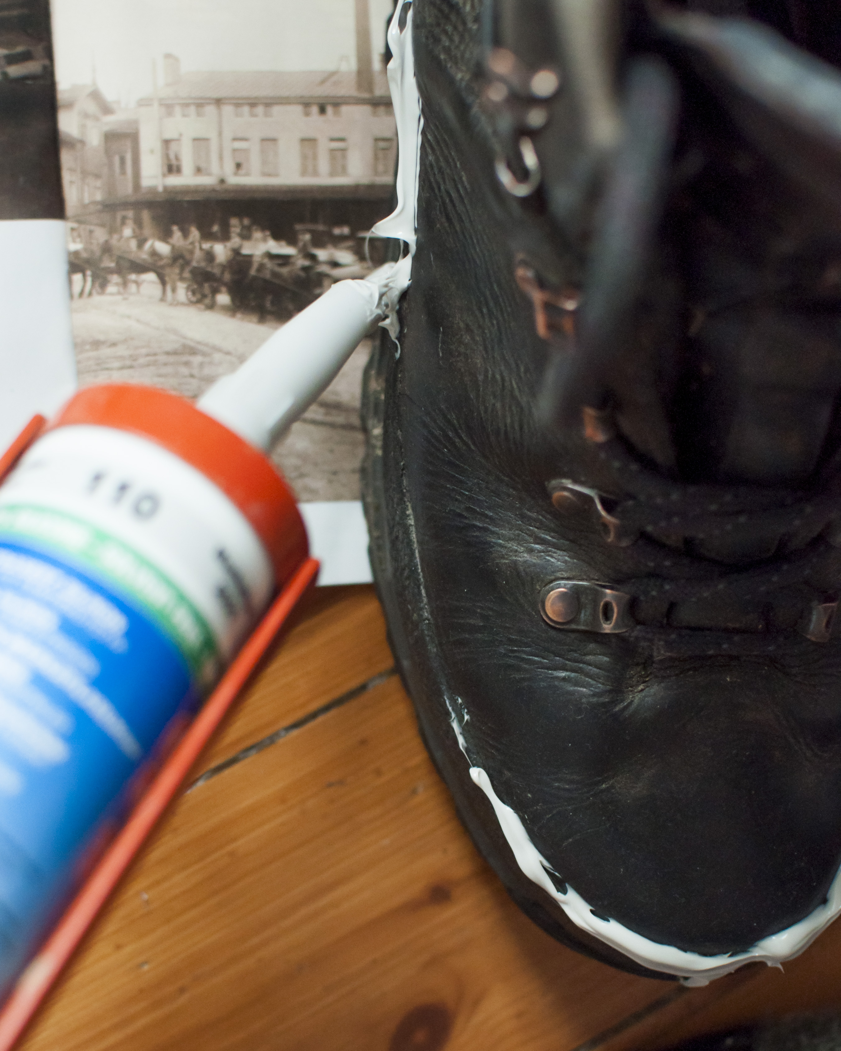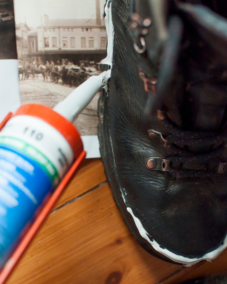 Ajatus uusista, kovista ja hiertävistä vaelluskengistä ahdistaa. Onneksi sain ystävältäni kullanarvoisen vinkin: kengät voi paikata silikonimassalla! Kätevää. Miten sattuikin, että juuri päättyneestä putkiremontista oli jäänyt yli vajaa tuubillinen, joten nuukana seikkailijana käytin sen loppuun. Väri ei ehkä ollut kaikista sopivin, mutta kukapa noita kenkiä keskellä erämaata katselee.