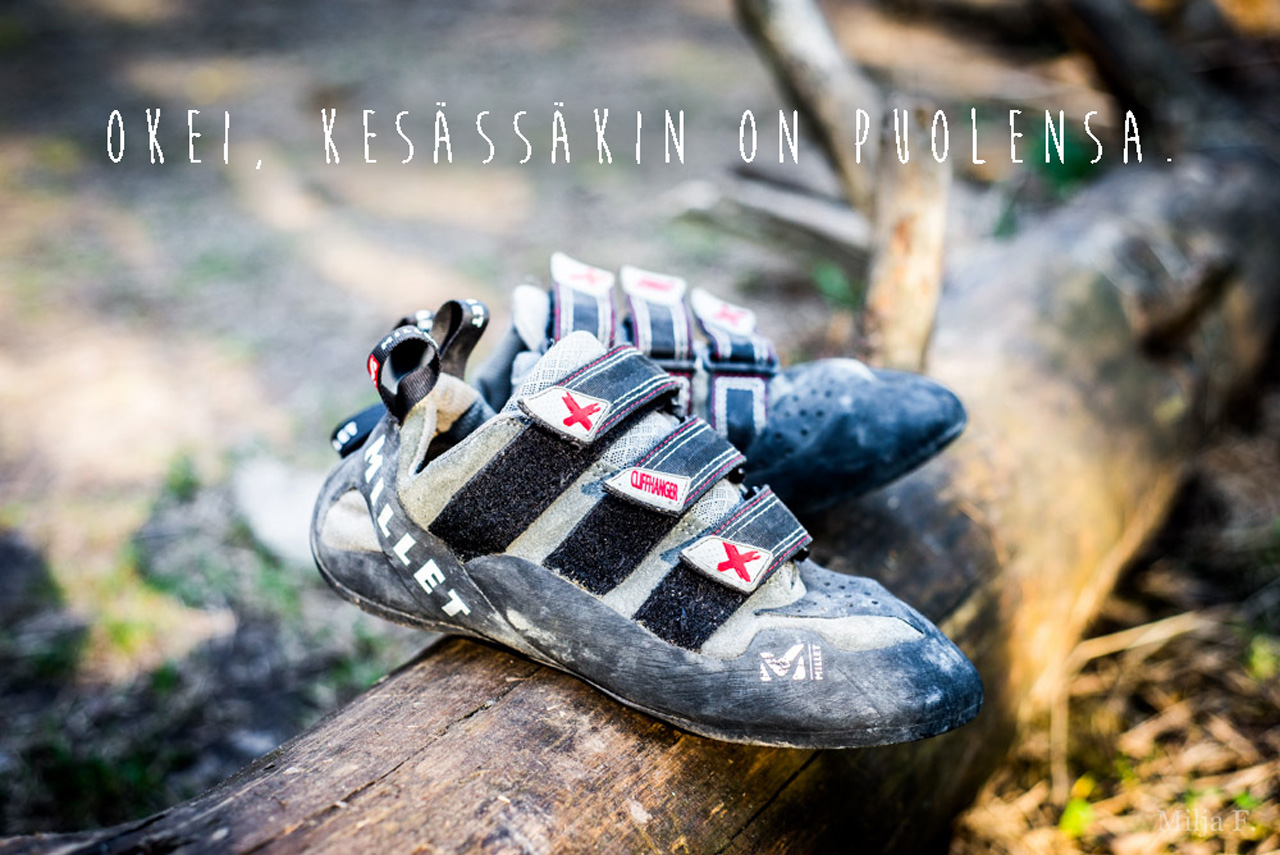 Sopivien kiipeilykenkien etsiminen on aina yhtä tuskaa. Viime syksynä nappasi: Milletin Cliffhangerit istuivat täydellisesti.Kun pääsin toissapäivänä ensi kerran kalliolle sitten marras-joulukuun kiipeilyreissun jälkeen, valtavat ihanat fiilikset velloivat yli. Syksyn matka Thakhekiin, Laosiin ja Thaimaan Tonsaille oli täynnä vahvaa kokemista, tuntemista ja olemista. Opin uudestaan kiipeämään, muistin, miksi tämä laji on minun. Laosin syrjäiset kalliot olivat vapaavuoden kiivastahtisen aloituksen jälkeen paikka, jossa monet siihen asti piilossa olleet ajatukset ryöpsähtivät esiin.