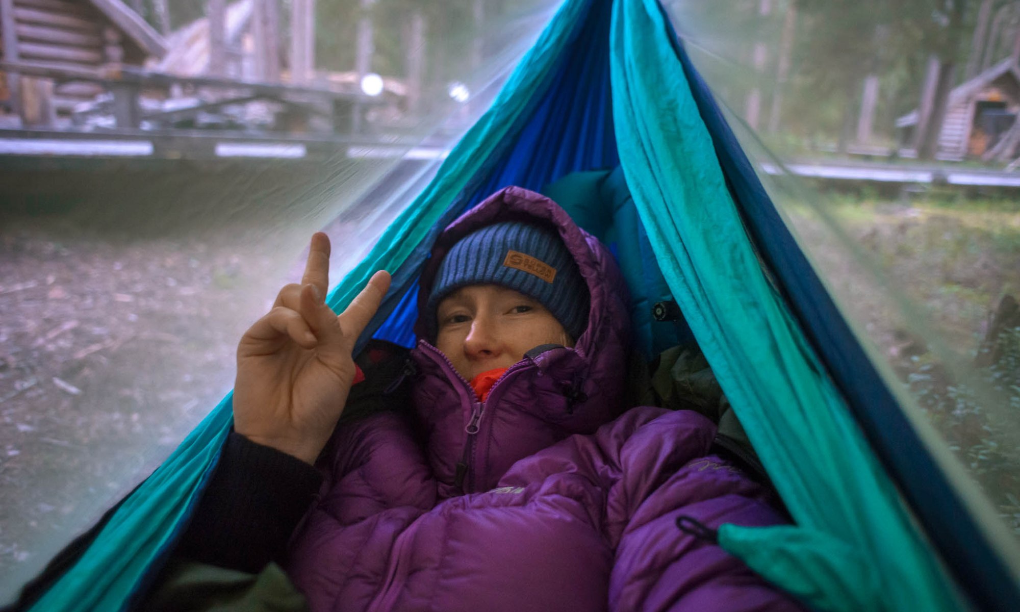 Alkuillasta oli melko viileä, ja mietin, saankohan unen päästä kiinni. Lopulta nukuin ihan hyvin, vaikka riippumaton reunoilta puski kylmää ilmaa – niiltä kohdin, joista riippumaton reunoivat painoivat makuupussia kasaan eikä välissä ollut makuualustaa. Aamulla heräsin siihen, että varpaat olivat jäässä, vaikka muuten lämpötila oli hyvä. Omassa talvimakuupussissani olisin luultavasti nukkunut täysin ongelmitta. Mutta -4 mukavuuslämpötilan pussissa pärjäsi siis kaltaiseni palelevakin nukkuja untuvavaatteet päällä, vaikka lämpötila droppasi paljon kylmemmäksi ja riippumaton katoksen alta pääsi vähän tuulemaan riippumattoon.