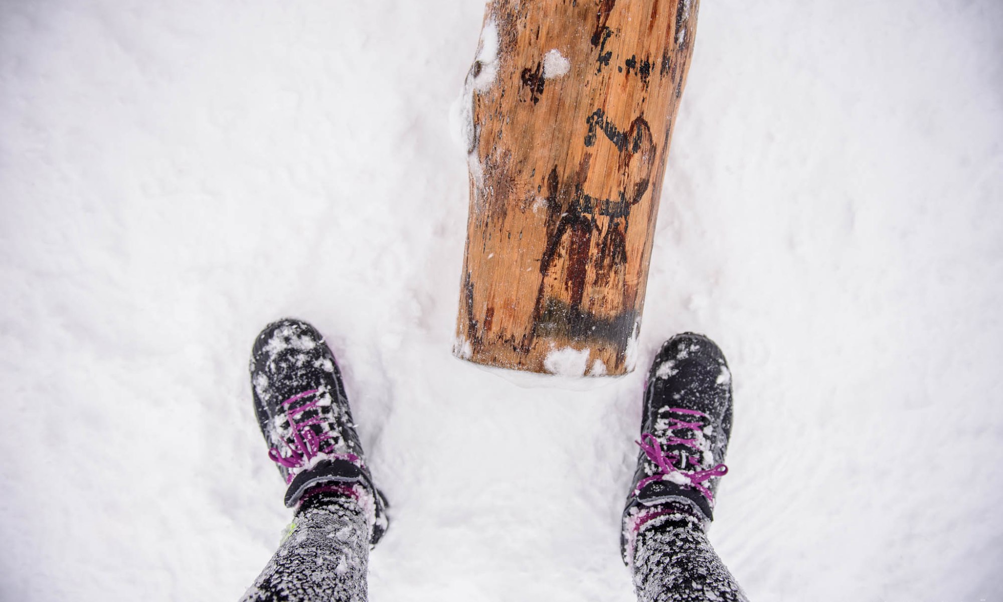 Selvisimme Miian kanssa reitiltä mainiosti. Olimme taipaleella noin kaksi ja puoli tuntia, ja ehdimme siinä ajassa kastua perinpohjaisesti, saada kädet ja jalat täyteen mustelmia ja nilkkalihakset puutuneiksi. Kisareitti kulki suurimmaksi osaksi umpihangessa, ja siitä muodustui aikamoista möyhyä.