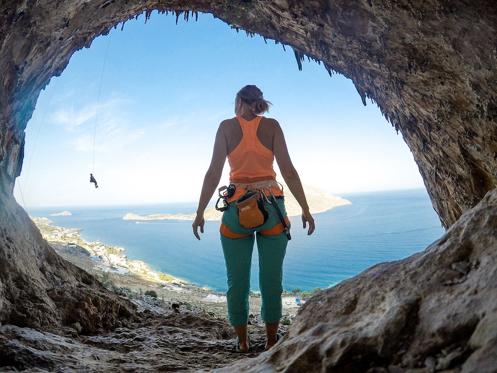Symplegadesin jälkeen oli aika tehdä tutustumiskierros Kalymnoksen trademark-cragiin eli Grande Grottan valtavaan luolaan. Kuuluisan katon lisäksi sen reunoilta löytyi myös suorempaa kiivettävää – esimerkiksi muutama ihana 6b:n tufareitti, jotka sain kiivettyä puhtaasti yläköydellä. Olin liikkeellä baarista bongaamassani uudessa seurassa, koska ystäväni oli lähdössä kotiin muutamaa päivää minua aikaisemmin. Varmistin päivän päätteeksi yhden Grande Grottan katossa sijaitsevan 7c:n ja sen kiipeämistä oli kyllä hauska katsella. Vielä joskus minäkin…