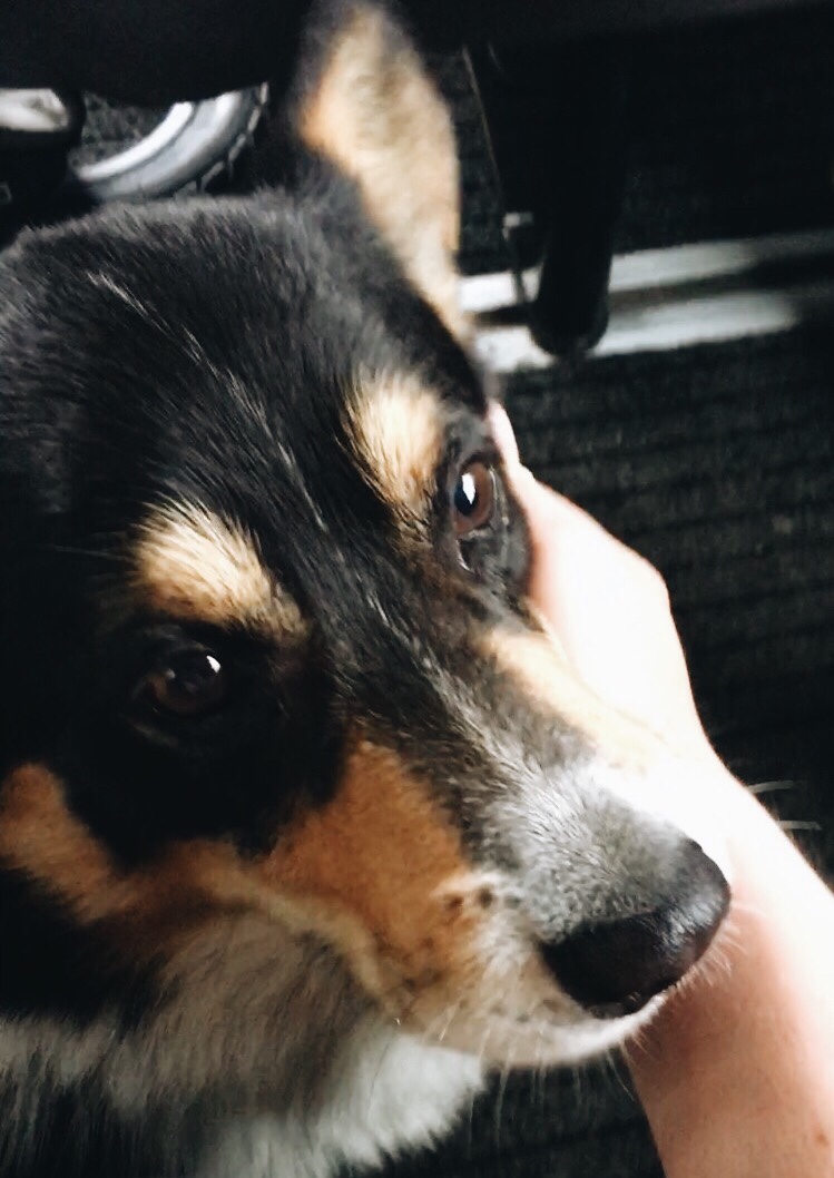 Noin vartin odottelun jälkeen meidät ohjattiin kyytiin, jossa takapenkkien välissä loikki ihana lohduttaja, corgi nimeltä Kino. Tällainen pitäisi olla jokaisessa DNF-autossa! (Ehkä onkin, en vain ole tiennyt siitä?)