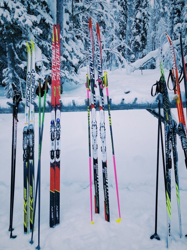 Valitsemani suksi oli toisiksi jäykin karvapohjasuksi. Pohdin valintaa sen ja jäykemmän suksen välillä pitkään, sillä olin tottunut hiihtämään jäykillä vanhoilla suksillani. Toisaalta ajatus leppoisista Lapin lenkeistä kiehtoi. Olisi loppujen lopuksi ihan kiva, jos olisi sellaiset sukset, ettei niillä tarvitsisi hiihtää aina täysillä.