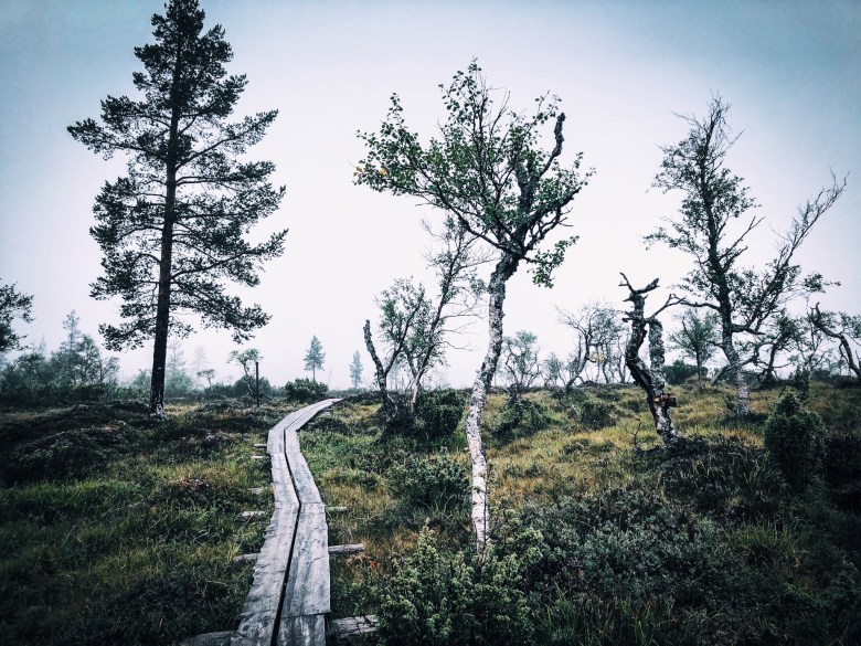 Kolmas päivä oli reissumme viimeinen päivä. Teimme aamupalan jälkeen noin seitsemän kilometrin lenkin – karttaan merkattu ”Poropolku”, joka vie viereisen Ahopään huipulle ja takaisin. Maisema oli kauniin sumuinen. En oikeastaan edes kaivannut auringonpaistetta, sen verran maaginen oli sumuisen tunturin tunnelma.