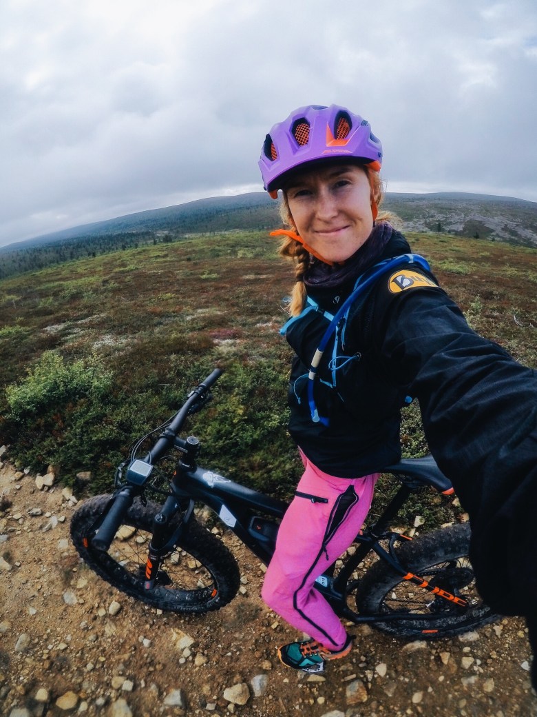 Tämä oli kaiken kaikkiaan kolmas sähköpyöräkokeiluni. Ensimmäisen kerran ajoin sähköpyörää Äkäslompolossa heinäkuussa (siitä ei ole vielä juttua), toisen kerran Turussa 10bikesin vieraana, ja nyt Kiilopäällä. Täytyy sanoa, että olen todella tykästynyt sähköavusteiseen polkemiseen – pidän pyöräilyssä erityisesti vauhdista ja eteenpäinmenosta, enkä hae siitä niin paljon treeniä kuin vaikkapa juoksusta. Sähkön avulla maisemista voi nauttia ihan eri tavalla, ja maastossa pääsee laskettelemaan monin verroin alamäkiä.