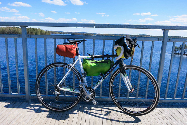 Minulla oli mukana melko vähän tavaraa. Kaikki tämä kulki tosi kätevästi pyörässä kiinni, ja ajaminen oli todella paljon mukavempaa kuin kahden takalaukun kanssa. Erityisesti tuo Vauden runkolaukku vaikuttaa tosi hyvältä ostokselta; sinne mahtui yllättävän paljon painavaa tavaraa, ilman että sitä oikeastaan edes huomasi ajossa.